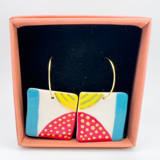 Square Hoop Drop - Red, Blue, Yellow & gold