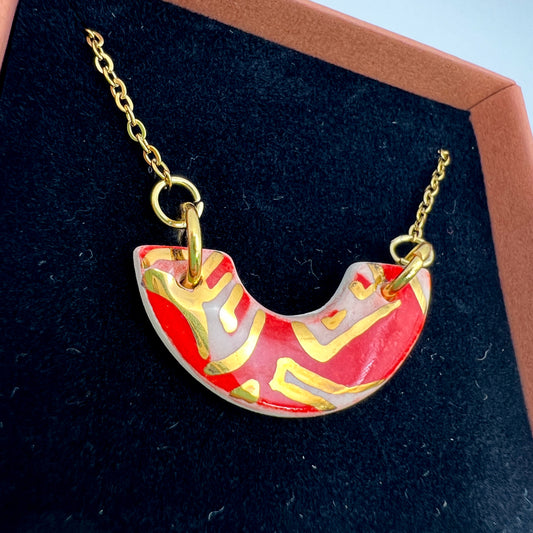 Mini Arc Necklace - Red festive print & 24 carat gold