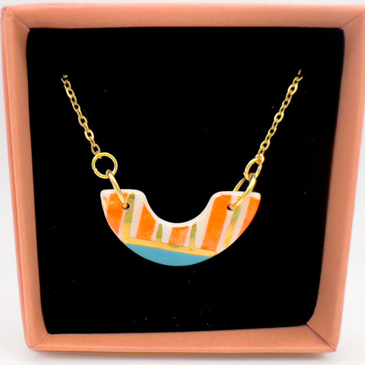 Mini Arc Necklace - Orange Stripe, Blue & 24 carat gold