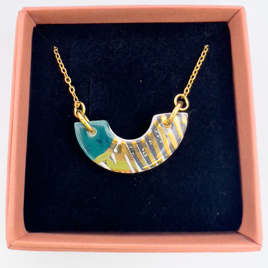 Mini Arc Necklace - Deep Sea Green, Black print, Red & 24 carat gold