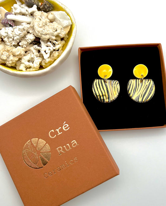 Cré Ór Beag Earring - Black wavy print, Yellow & 24 Carat Gold