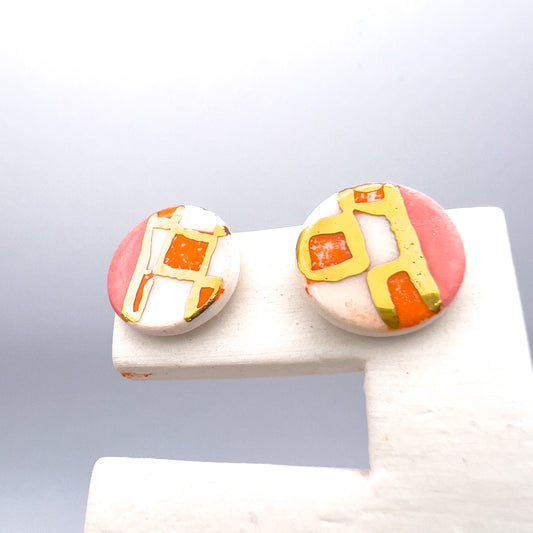 Mini stud- Orange checker print, 24 carat Gold Lustre & pink