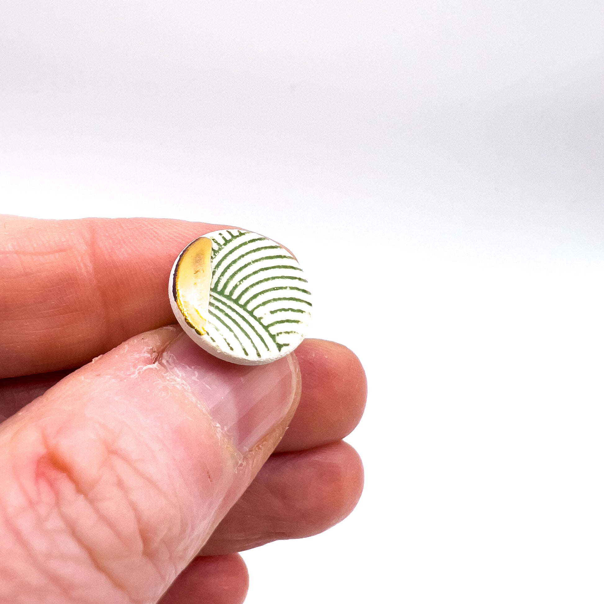Mini Stud - Green swirly print & 24 carat gold